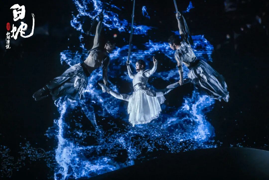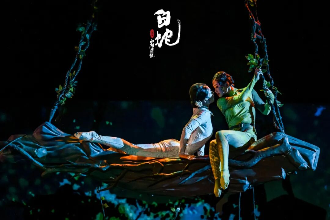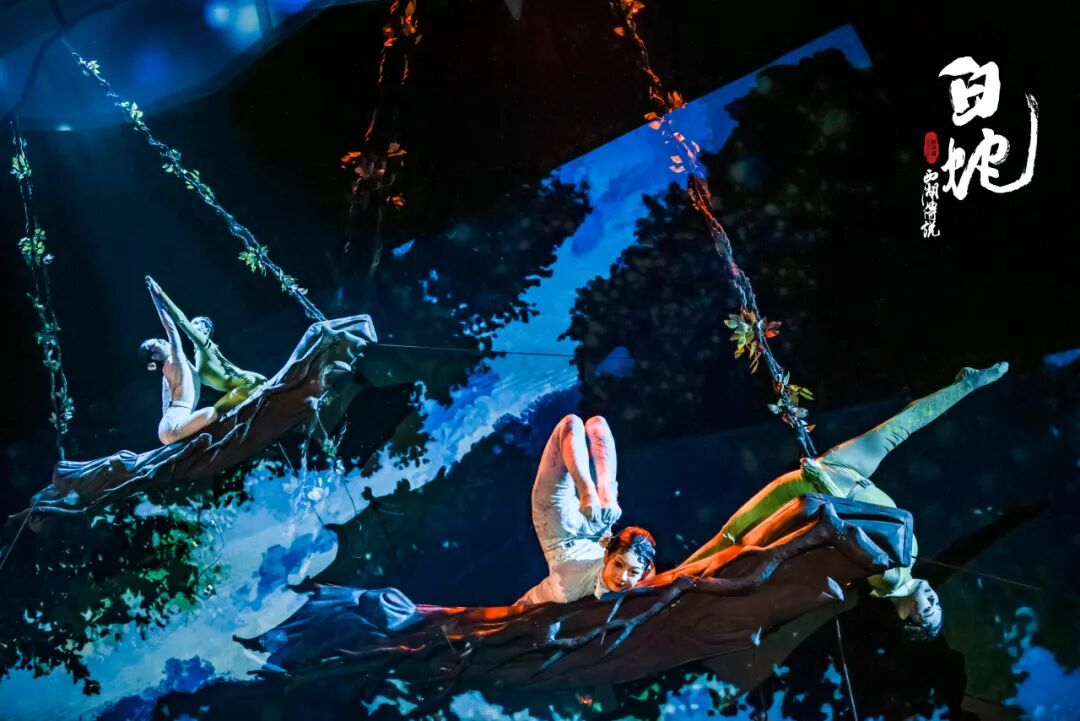 故事将高空绸吊、柔术、蹬伞、流星、空竹、中幡、集体草帽等十余项高难度杂技技艺巧妙地融入剧情,技中有戏,戏中有情,十分贴切地渲染出白蛇传说的奇幻色彩。同时,还融合戏曲、舞蹈等多种艺术形式,运用现代舞台技术与多媒体视觉技术,将那段家喻户晓的爱情传说演绎得别开生面。