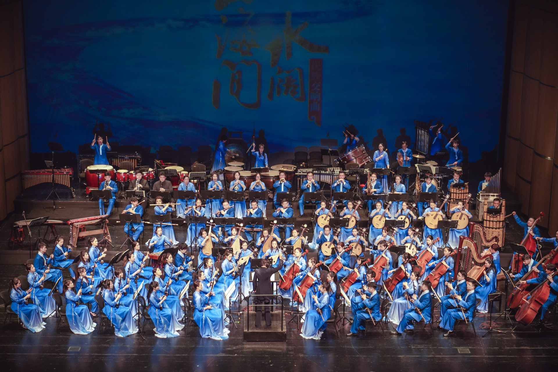 民族交响曲《水阔山海间》是著名作曲家王丹红博士历经三年实地采风、潜心创作而成; 以水之名,依水为路,寻溯钱塘潮涌的源头起点,构筑之江儿女的心灵家园;交响曲由六个乐 章构成,序曲《一苇航之》、第一乐章《水至》、第二乐章《山望》、第三乐章《闹花台》、 第四乐章《缘会》、终曲《水阔山海间》。作品描绘了天高水阔、山海相依的壮美画卷,水之 源、山之巅、海之上,纵情吟唱——扬帆正当时,水阔山海间!