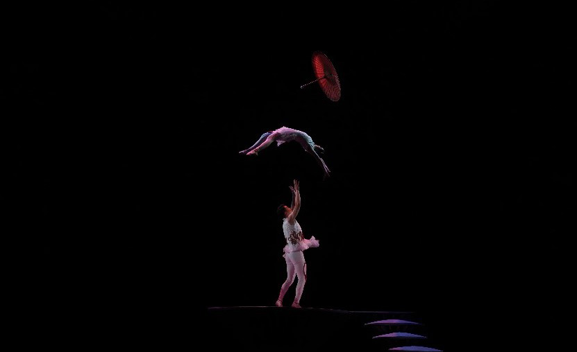 该作品以男子二人对手技巧为主要表现形式,通过杂技演员刚柔并济的身体和力量,用肢体完成对手顶支撑,脚上托举,头上单手倒立等高难度造型动作,展现力与美,用情感传递出中国共产党面对任何困难和挑战总是永不服输、永不放弃的精神。